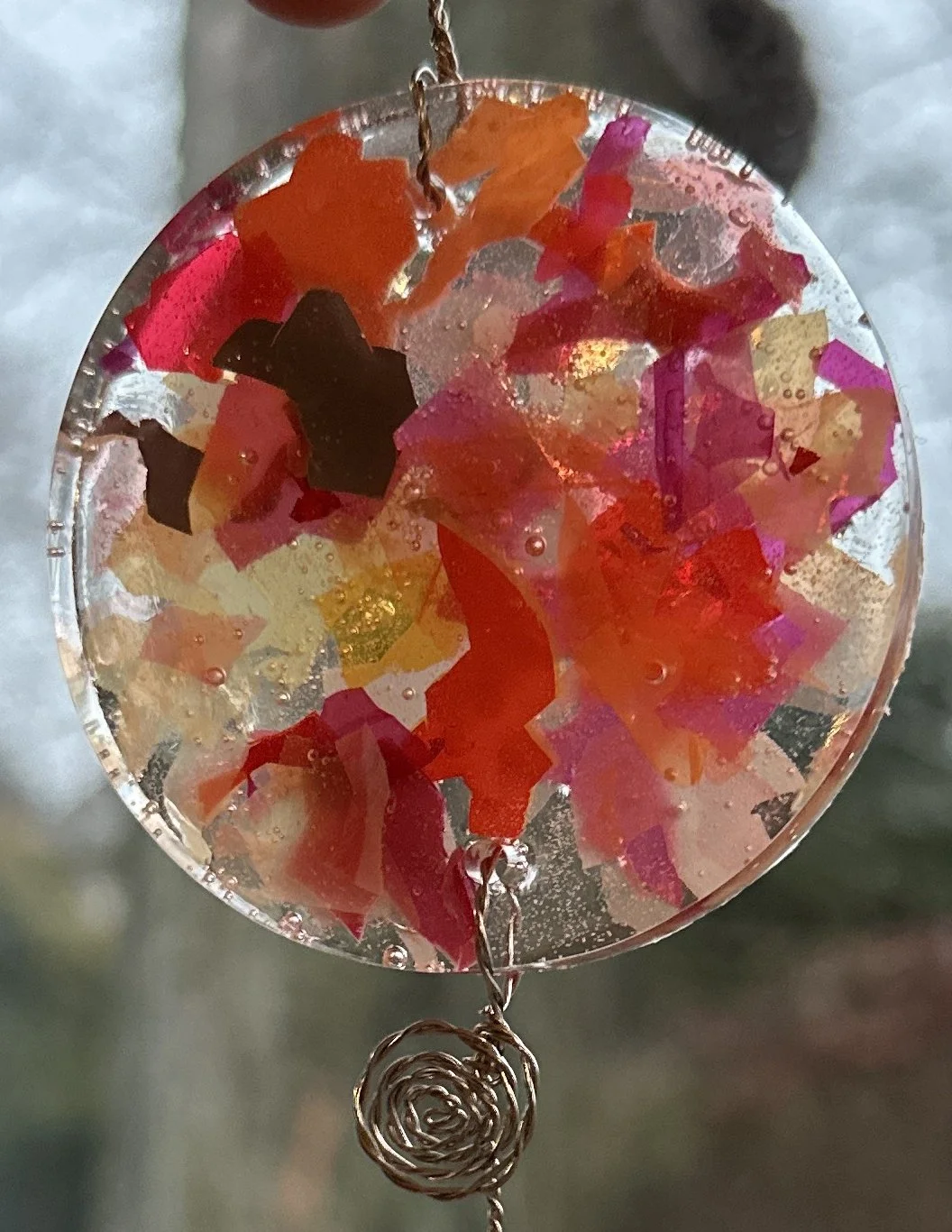 Quilters and collage artists know that scraps are the most wonderful material for art! As a single-use plastic artist who repurposes from the start, I also have scraps at the end of the day. My scraps are micro-plastics of my own making. Instead of throwing them out, I decided to make them into ornaments.